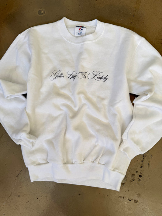 (Women’s S) White Gettin Lucky Sweatshirt