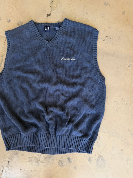 (L/XL) Embroidered Navy Sweater Vest